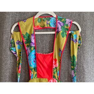 VTG Apron Over The Head Floral Red Green Blue Child Baker Pretend Play