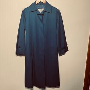 VTG Aquascutum London Trench Coat Navy Blue Lined Belted Waterproof Rain Long M