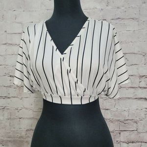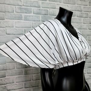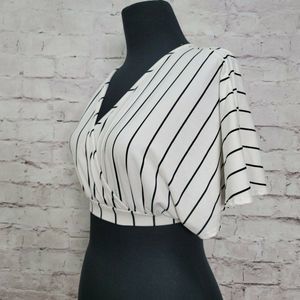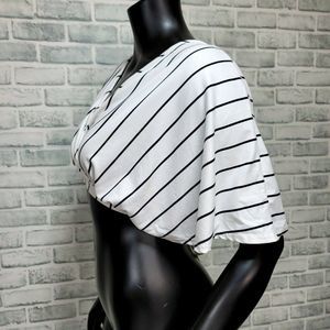 VTG Arabella Size S Black White Striped Surplice Crop Top Keyhole Tie Back Boho