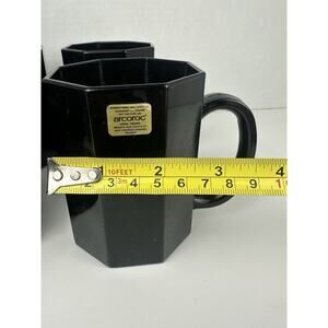 VTG Arcoroc Black Glass Mugs Octagonal Made In France Retro Vibe