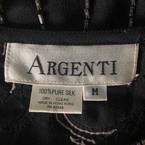 VTG Argenti Womens Black Party Top Size Medium Silk Beaded Sequined Vintage 80s