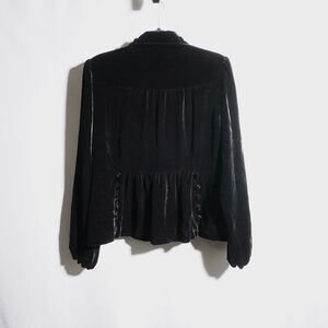VTG Aris A USA Black Velvet Blazer Silk Rayon Blend Jacket Womens Large Studded Dark Academia SEE collared vamp goth gothic formal quiet luxury modern minimalist lined long sleeve velour glam buttons whimsigoth fairy solid