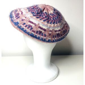 VTG Aris Purple Pink Multicolor Knit Pastel Cozy Soft Girl Aesthetic Beret Hat