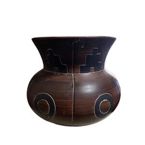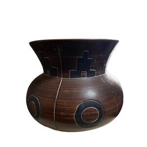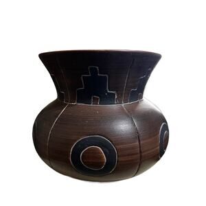 VTG Armando De Mexico Aztec Design Pottery Vessel Pot 7" Tall 7" Wide
