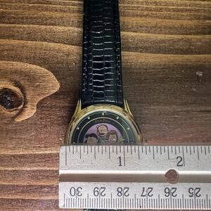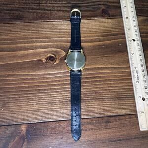 VTG Armitron Peanuts Characters watch GoldTone Black Leather Strap Needs Battery