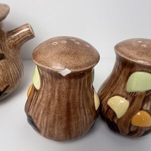 VTG Arnel's Mushroom Teapot Dark Lid Salt & Pepper Shaker Set Ceramic
