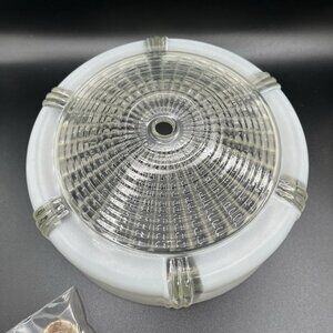 VTG Art Deco Glass Ceiling Light Shades White Flush Mount & Clear Hobnail Dome