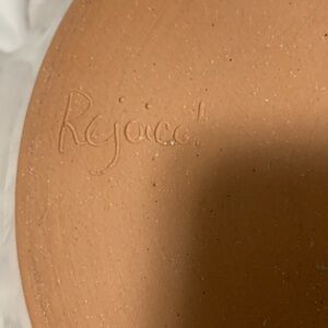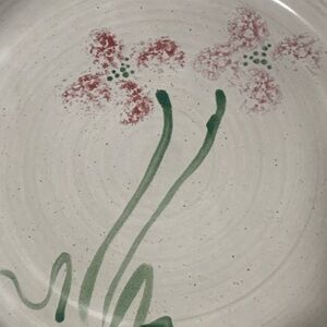 VTG Art Pottery Clay Casserole Dish Handmade Deep Pink Flowers Signed by Artist