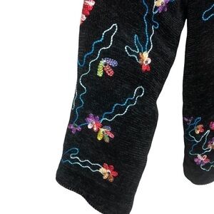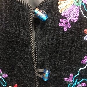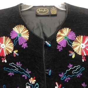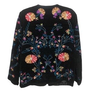Vintage JULIA Kim Art to Wear BLACK Multicolored Floral EMBROIDERED Velour JACKET 3/4 Sleeve Unique Buttons Light shoulder pads Women’s SIZE Small Medium Very Clean Very nice preowned condition