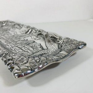 VTG Arthur Court Bread Serving Platter 18" Cast Aluminum Repousse Safari Signed