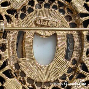 VTG Arthur Pepper ART Lady Portrait Cameo Filigree Faux Pearl Gold Tone Brooch