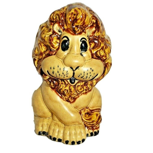 VTG, Artisan Hobbyist Lion Bank Animal Figurine Brown Ceramic 1974 Kitschy Retro