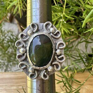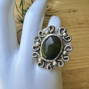 VTG Artisan Ring Size 5.5 Green Red Bloodstone Agate Southwest 925 Sterling 9.9g