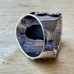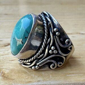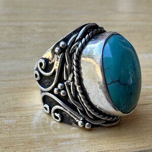 VTG Artisan Ring Size 5.75 Blue Turquoise Chunky Ornate 925 Sterling 10.4g