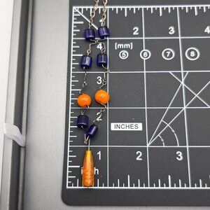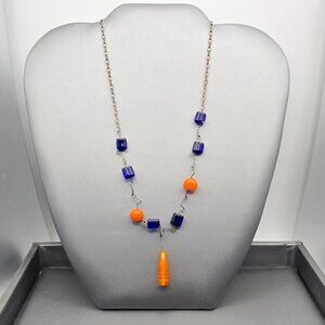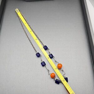 VTG Artisian Necklace Sterling Silver Cobalt Blue & Orange Beaded Necklace 16"