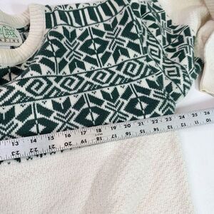 VTG Ash Creek Sweater Mens Medium Cream Green Fair Isle Crew Neck Nordic