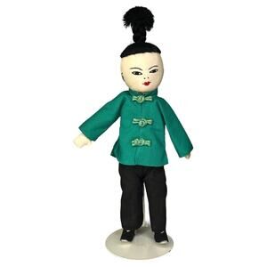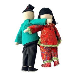 VTG Asian Japanese DOLLS 8" Embroidered Cloth Boy Girl Silk Kimono Top Pants