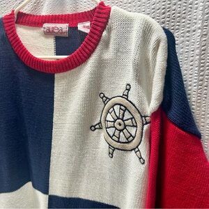 VTG Aurea Nautical Sailing Sweater 100% Combed Cotton Red White & Blue Size L