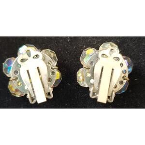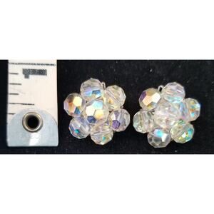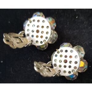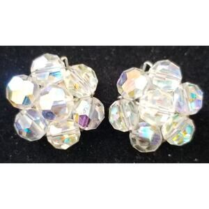 VTG Aurora Borealis AB Crystal Cluster Floral Silvertone Clip-on Earrings