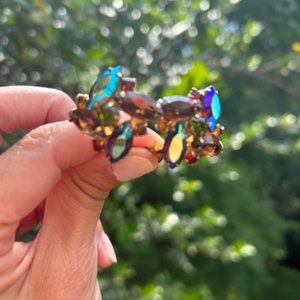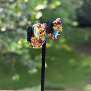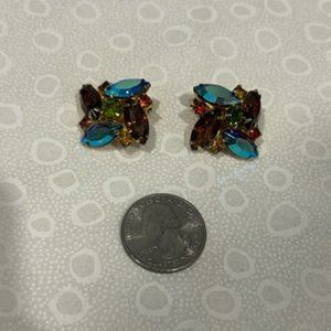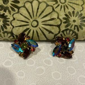 VTG Aurora Borealis AB Rhinestone Gold Earrings
