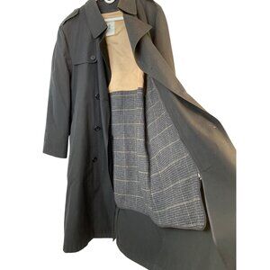 VTG Austin Reed Mens 40S Trench Coat Rain & Stain Repellent Wool Liner Black