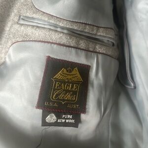 VTG Australia 100% Wool Eagles Clothes Two Button Blazer Chevron Gray Large