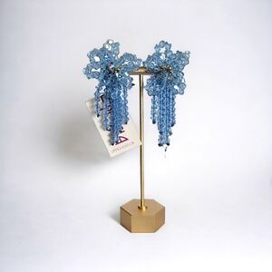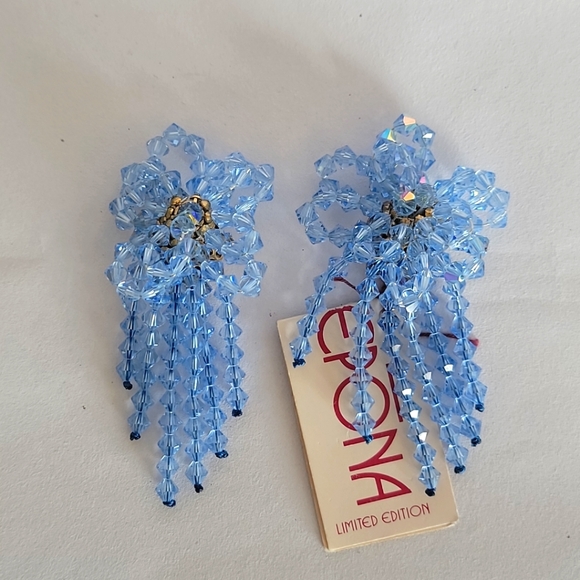 ⚜️VTG Austrian Crystal Sky Blue Beaded Dangle Earrings NWT