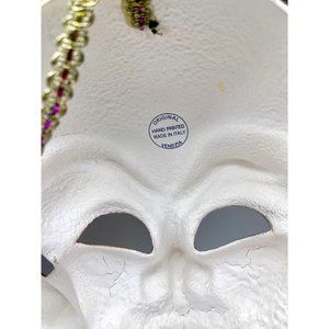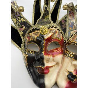 Authentic vintage Venetian dual carnival jester wall mask made by hand from very sturdy paper mache in Italy. Beautiful details with everything intact. This mask is in excellent condition. Authentic stamp and markings from the artist.