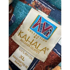 VTG Avi Kahala Hawaiian Shirt Mens XL Surfer Woodie Theme Button Up 100% Rayon