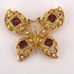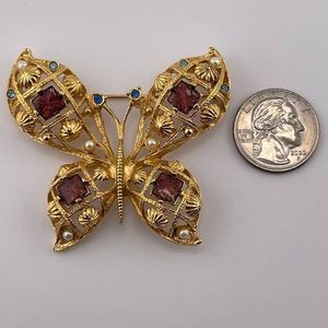 VTG Avon 1990s Large Butterfly‎ Faux Pearl Rhinestone Brooch Pin