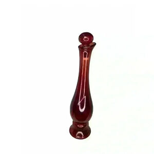 VTG Avon 70s Ruby Red / Cranberry Bud Vase Perfume Bottle w/ Stopper