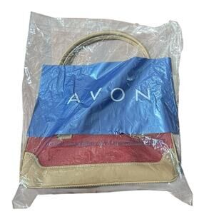 VTG Avon Denim Handbag Purse 2001 Gingham Lining Tan Burgundy Y2K NEW NOS Retro