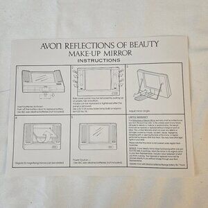 Lighted make up mirror from Avon. Light panels on both sides of the adjustable mirror. The mirror can flip from a standard mirror to a magnifying mirror. Adjustable metal stand attached on the back. Battery operated. On/off switch on the front for easy access.