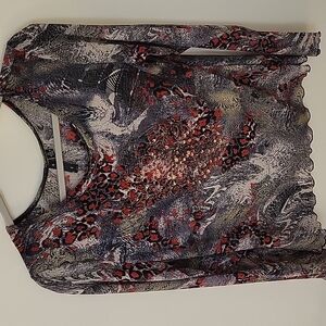 VTG Azi Leopard Print Chiffon Bedazzled Long Sleeve Gothic Blouse