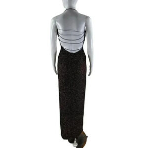 VTG B. Darlin Women 8 Cowlneck Slip Dress Stretch Allover Sparkel Shine Copper 90s Y2K Slimming Gown