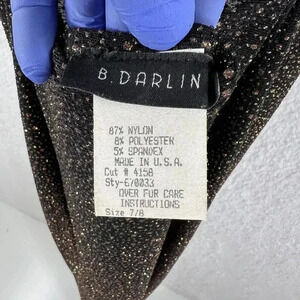 VTG B. Darlin Women 8 Cowlneck Slip Dress Stretch Allover Sparkel Copper 90s Y2K