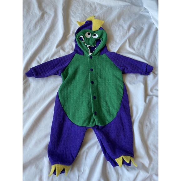 VTG BABY GRO KAPART Romper Sleeper Small Green Purple Dinosaur Alligator 0-3 mo