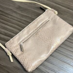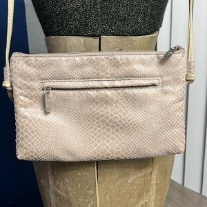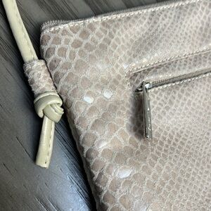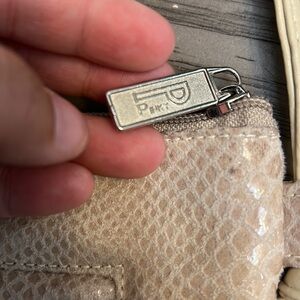 Vintage Cream colored leather faux Python Bags by Pinky bag with plaid interior. So cute. Good vintage condition