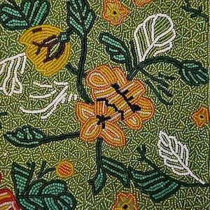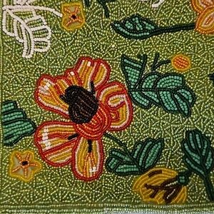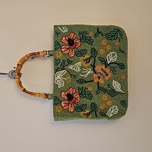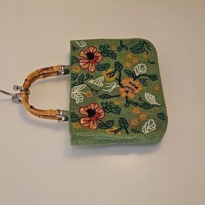 VTG BARSE Fairycore Floral Heavily Beaded Bamboo Double Handle Tote Bag