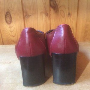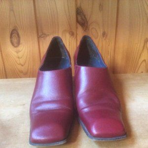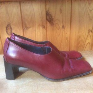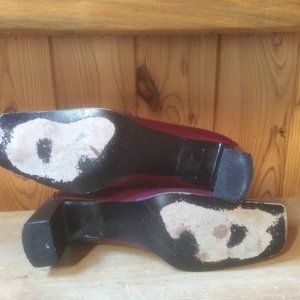 VTG BCBG Max Azria 90s Red Leather Square Toe Made in Italy Heel Size 8.5/39.5
