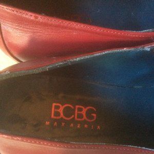 BCBG Max Azria Red Leather Square Toe Slip On Chunky Heel Size 8.5/39.5