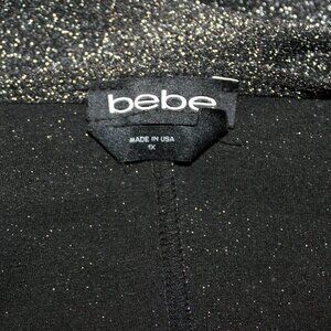bebe silver metallic sleeves mini dress.  Has stretch and great shine!