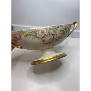 VTG BELLEEK Lenox Large Compote Center Piece Hand Painted ROSE 12in. GOLD TRIM