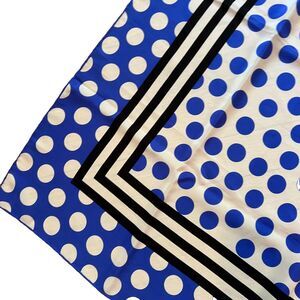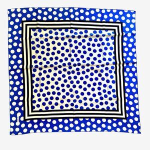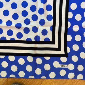 VTG BILL BLASS SQUARE WHITE BLACK BLUE POLKA DOT HANDROLLED SILK scarf