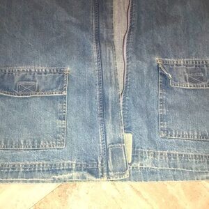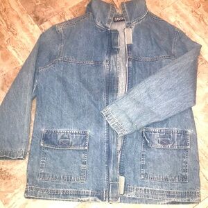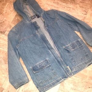 VTG BLASSPORT DENIM HOODED OVERSIZED ZIPPERED UTILITY CHORE JACKET SIZE LARGE
