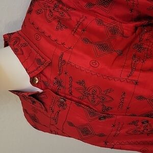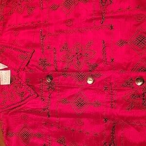 ๐ บVTG BLEU BAYOU Red Silk Embroidered Beaded Holiday Shacket