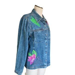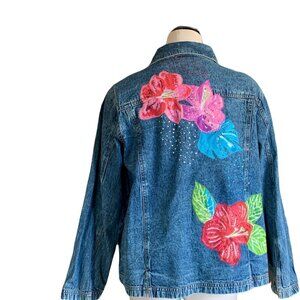 VTG BOHO Floral Embroidered Denim Jean Jacket Sz 1XL by Mirasol #73F
