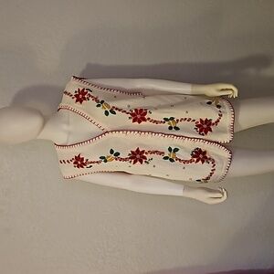 VTG BP DESIGN Poinsetta Embroidered Ugly Christmas Waistcoat Sweater Vest