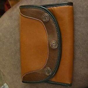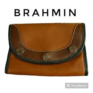 VTG BRAHMIN Three Tone Button Flap Envelope Leather Belt Purse