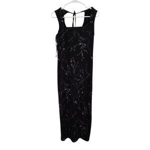 VTG BREAKEN LOOSE SZ 7/8 Y2K GLITTER VINE PRINT SLEEVELESS WITH MAXI DRESS